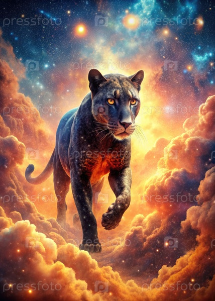 Черная пантера ходит через космические туманности