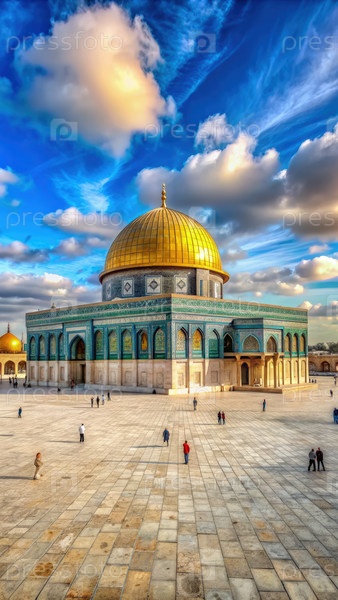 Великолепная мечеть Аль-Акса, окруженная обширной открытой зоной под ярким небом в Палестине