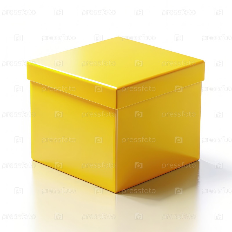 Ярко-желтый ящик, расположенный на белом фоне для отображения в минималистическом стиле