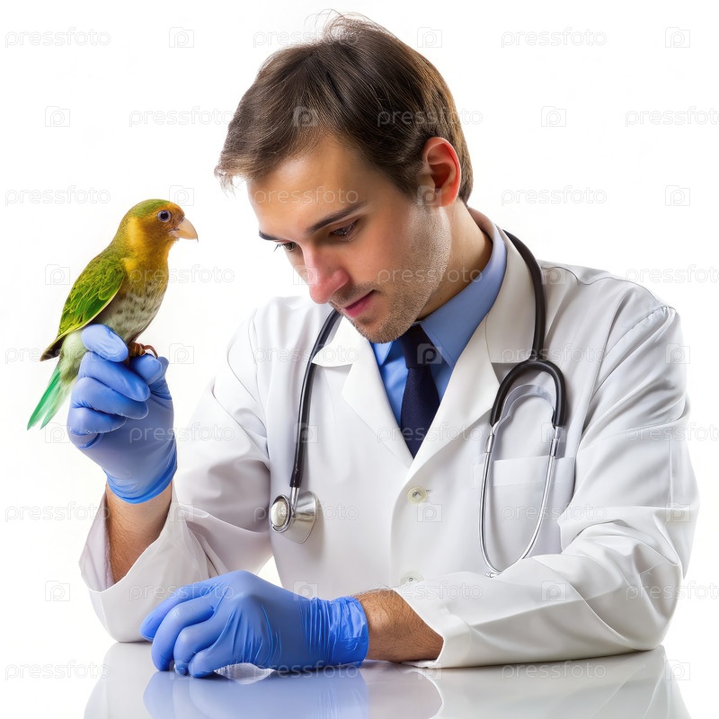 Ветеринар, дающий лекарства зеленой и желтой птице
