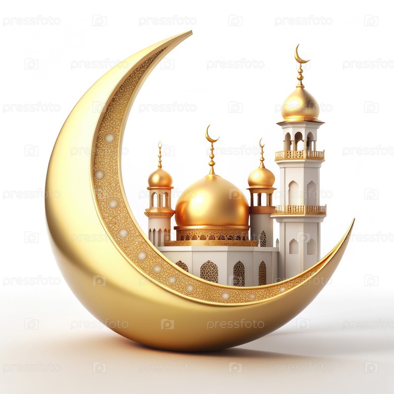 Золотой полумесяц Луна, обрамляющая мечеть для Рамадана Карим