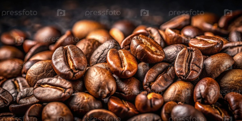 Ближайшее изображение обжаренных кофейных бобов на темном фоне