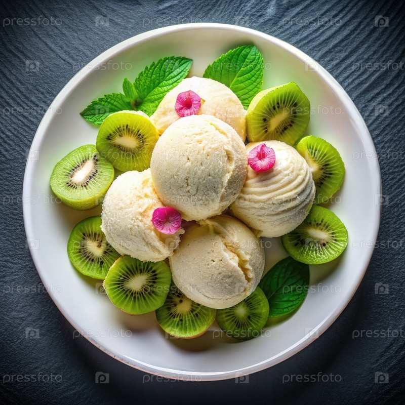 Свежий киви и банановый мороженое десерт на белой тарелке
