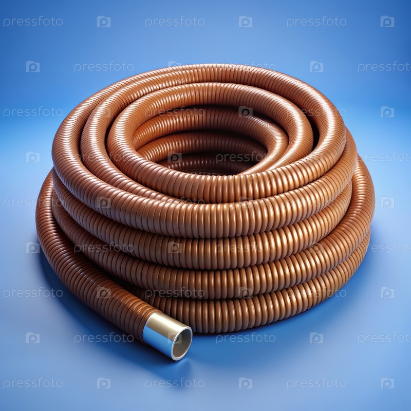 Рулонный коричневый шланг с серебряным концом. генеративная AI