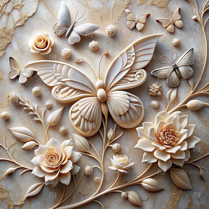 Вырезанный бабочка и цветочный дизайн в кремовой белой акриллике. генеративная детальная ИИ