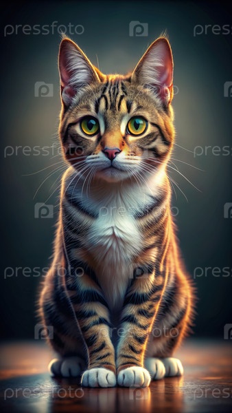 Табби-кошка позирует на деревянной столовой
