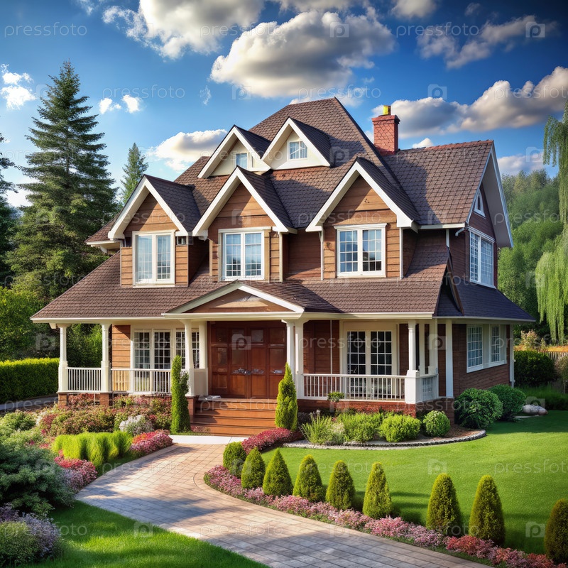 Приусадебный двухэтажный дом с озелененным двором и каменной дорогой