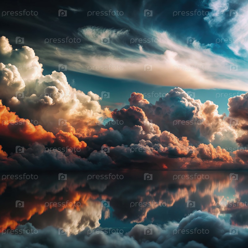 Завораживающее формирование облаков над спокойной водой на закате в ярких цветах