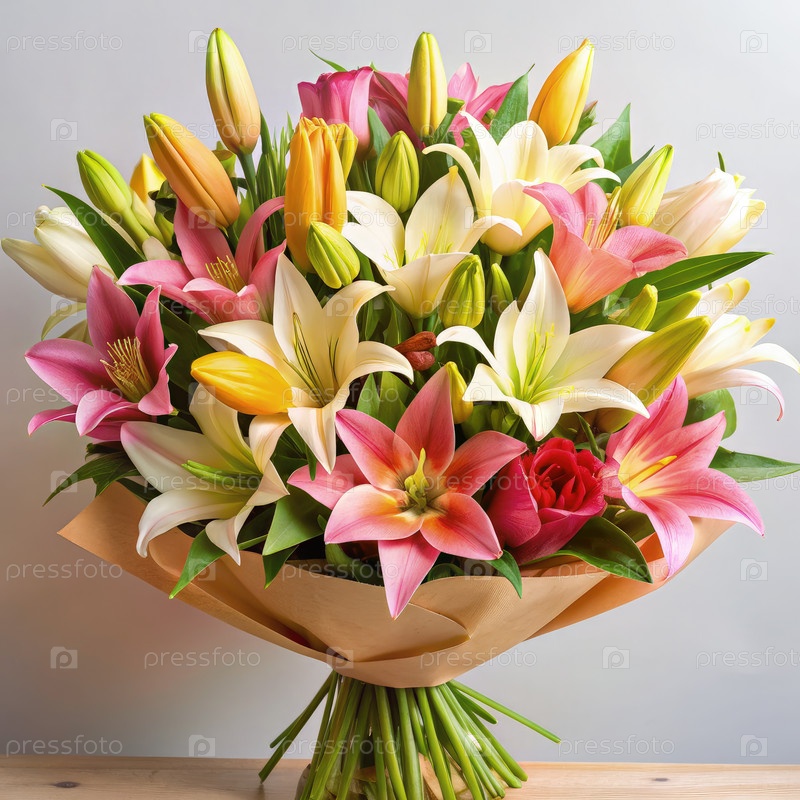 Вибрирующий букет лилий, готовый к подарку