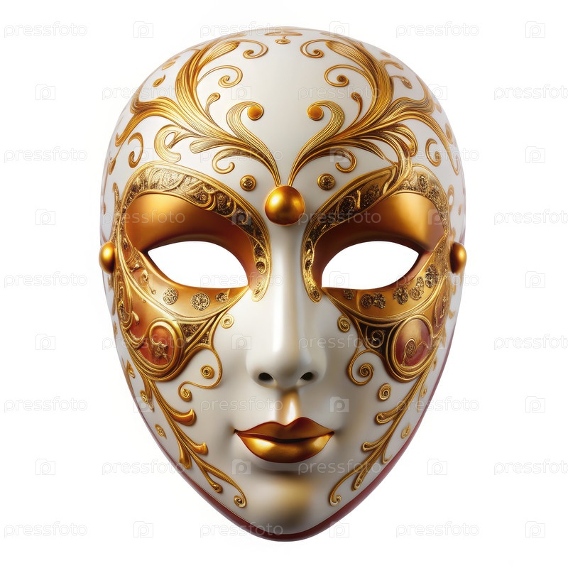 Белая и золотая венецианская карнавальная маска со сложными деталями