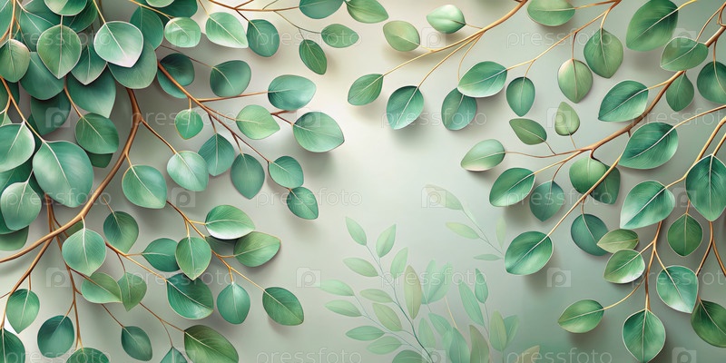 Густозеленые листья эвкалипта в художественном оформлении на мягком фоне