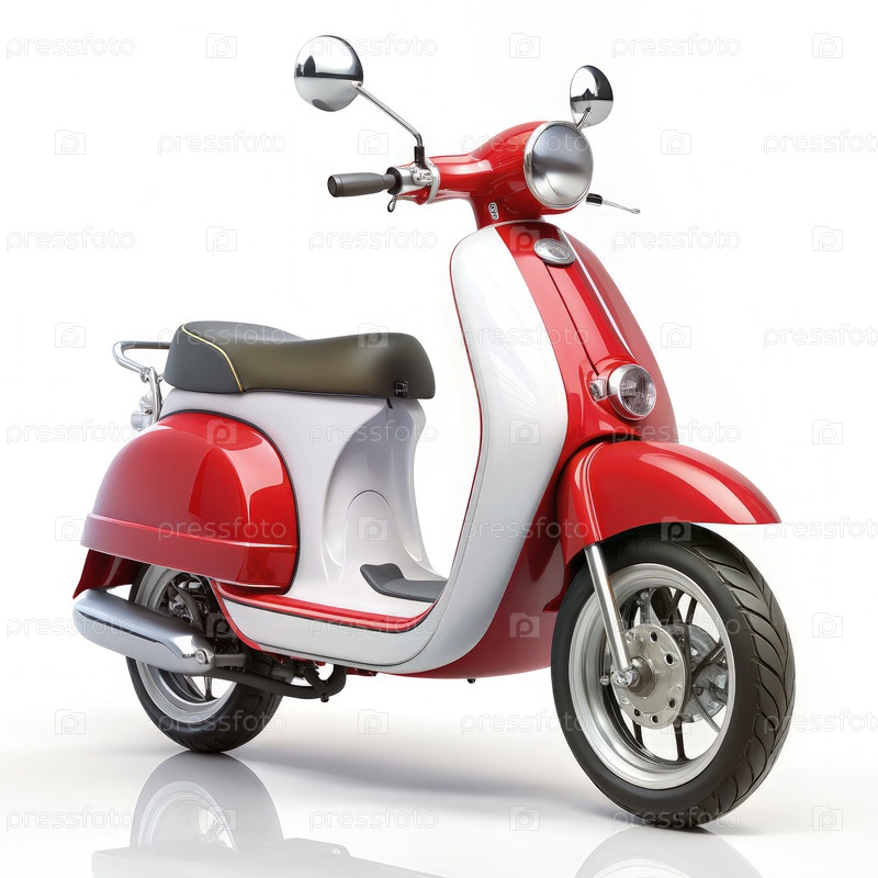 Яркий красный скутер на белом фоне, демонстрирующий классический дизайн и стиль для городских поездок