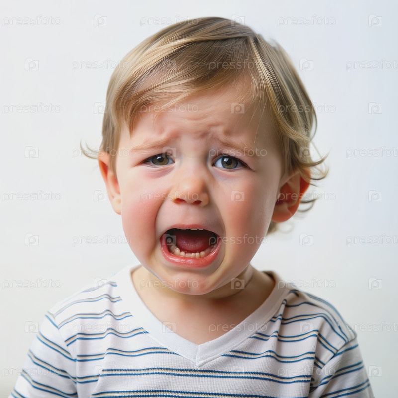 Молодой мальчик плачет перед белым фоном