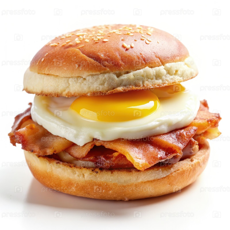 Близкий взгляд на вкусный бутерброд с завтраком со жареным яйцом и хрустящим беконом