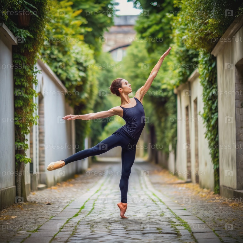 Балерина, исполняющая лорд танцевальной позы в парковой аллее