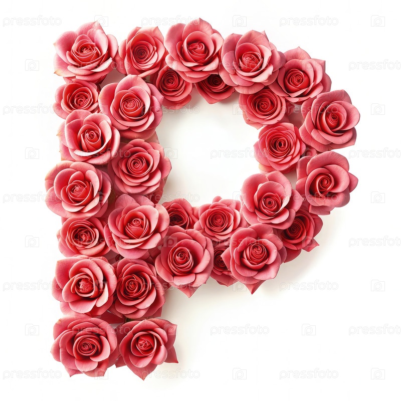 Элегантно расположенные розовые розы, образующие букву P на белом фоне