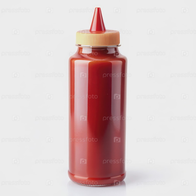 Одна бутылка кетчупа с красной шапкой на белом фоне