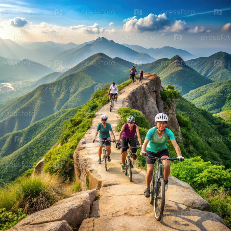 Приключение на горном велосипеде на живописном хребте. генеративный ИИ