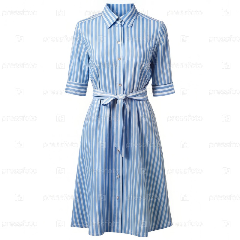 Рубашка в полосатой рубашке с поясом, случайный летний стиль. генеративный синий AI