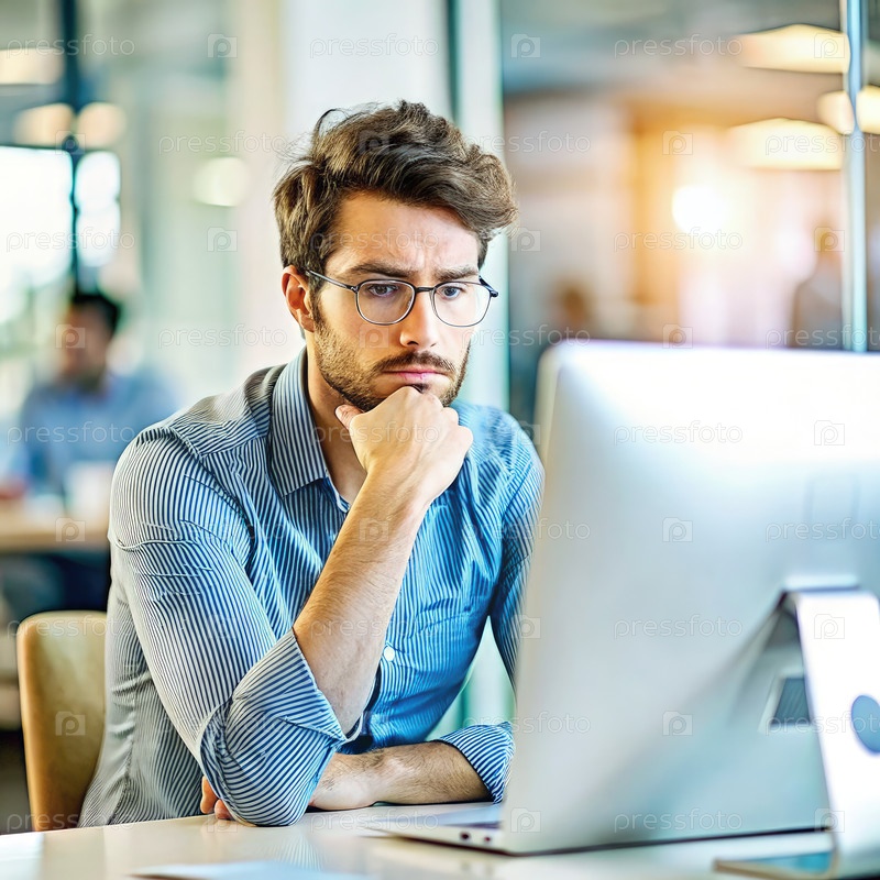 Сотрудник борется с творчеством, работая над программным проектом в современной офисной среде