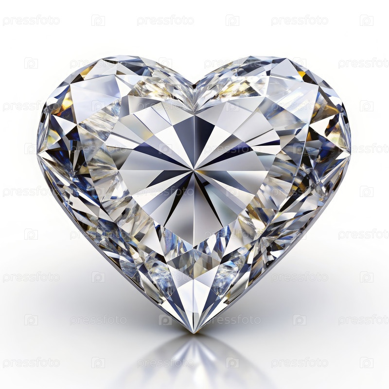 Диамант в форме сердца на белом фоне