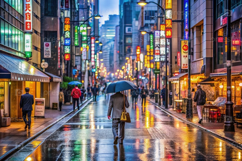 Дождливая вечерняя прогулка по неоновой улице Токио