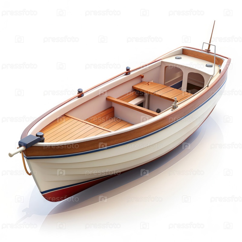 Белая и деревянная маленькая лодка изолирована на белом фоне
