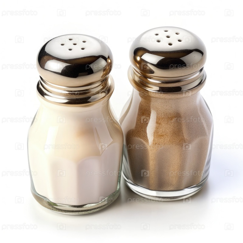 Соляные и перечные шайбы на белой поверхности. генеративный ИИ