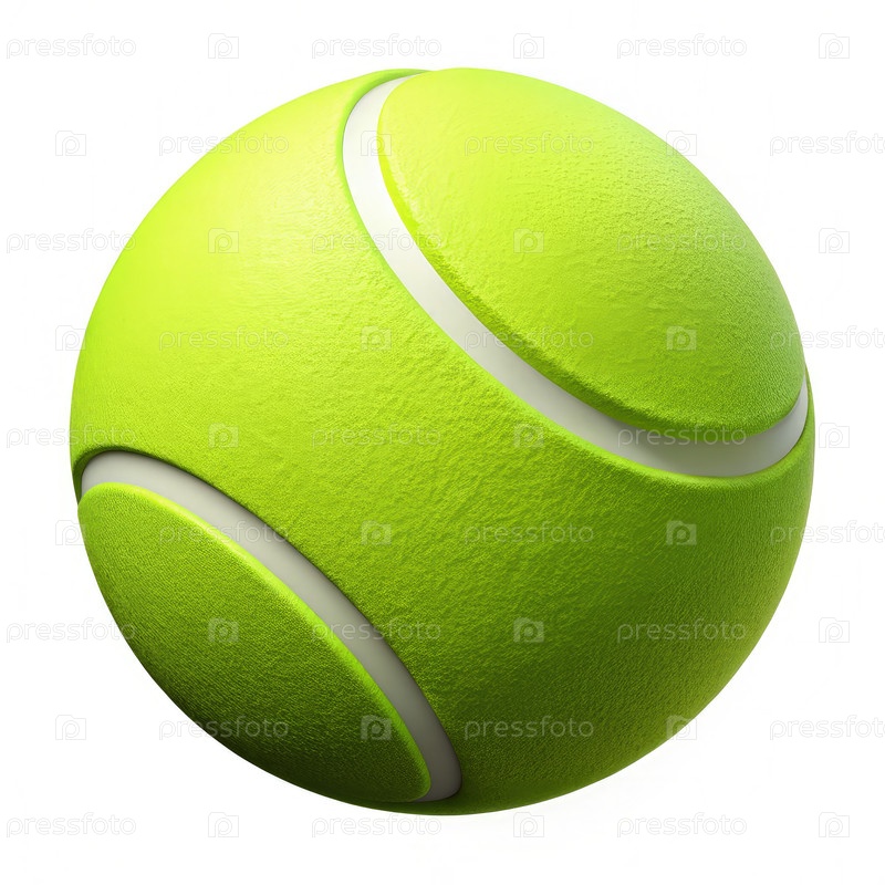 Яркий желтый теннисный мяч, сидящий на чистом белом фоне в стандартной круглой форме