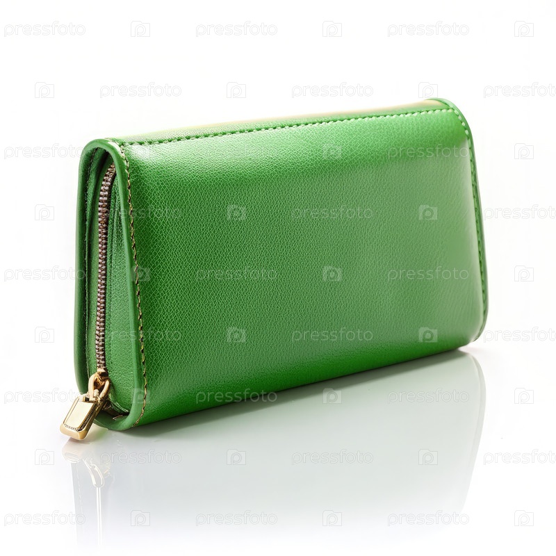 Элегантная длинная зеленая сумочка, сидящая на белом фоне, демонстрирует ее гладкую отделку и шикарный дизайн