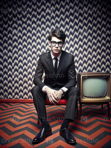 Подросток в костюме сидит на красно-черном шевроне