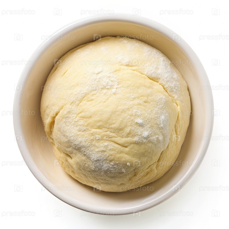 Свежеприготовленное хлебное тесто, растущее в белой миске на чистом фоне