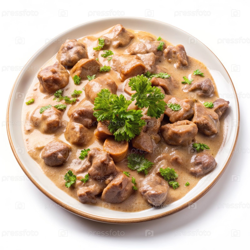 Кремный говяжий страганофф с грибами и петрушкой, традиционное русское блюдо
