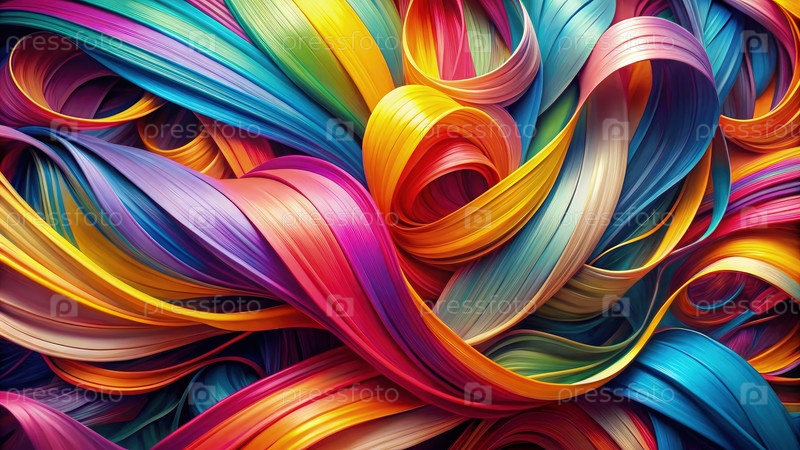 Вибрирующее отображение красочных лент, скрученных вместе в динамической композиции