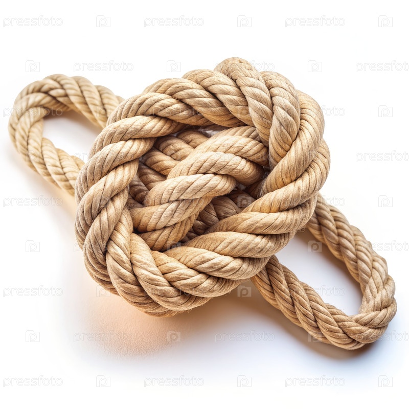 Ближайшее изображение узла веревки на белом фоне
