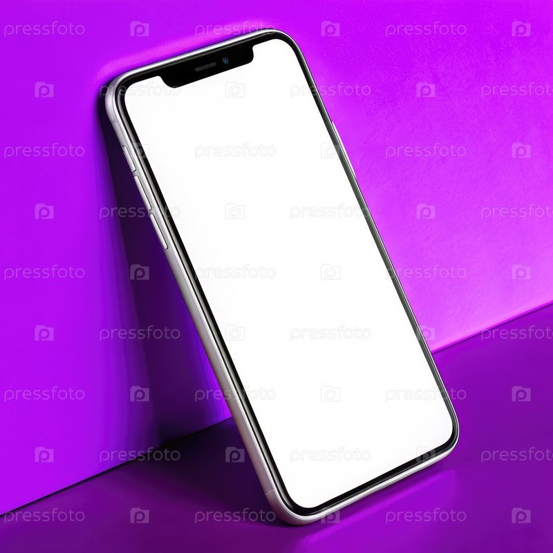 Современный смартфон, отдыхающий на ярко-фиолетовом фоне