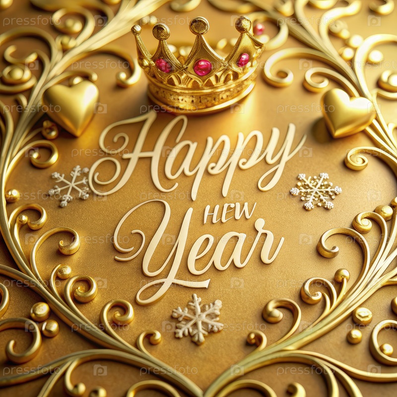 Элегантный золотой дизайн Счастливого Нового года с короной и сердцами