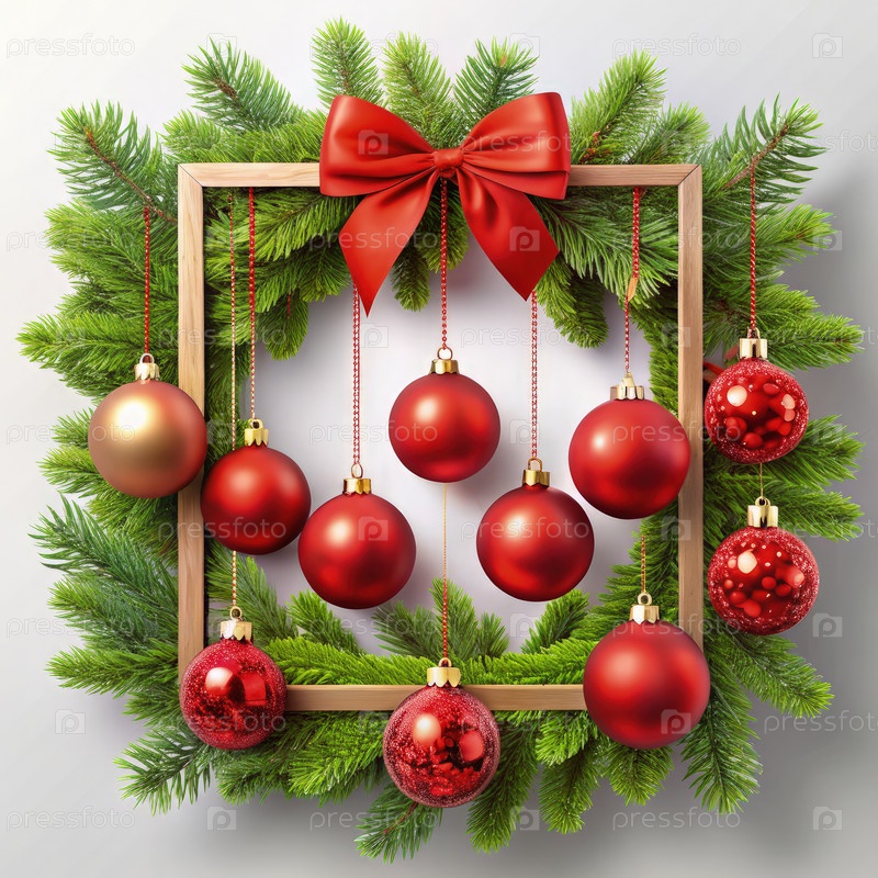 Рождественское украшение венок с красными луками и сосновыми ветвями