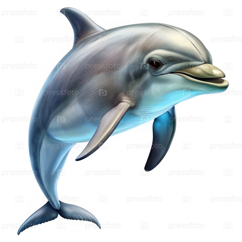 Дельфин, грациозно плавающий в чистой воде на ярко-белом фоне