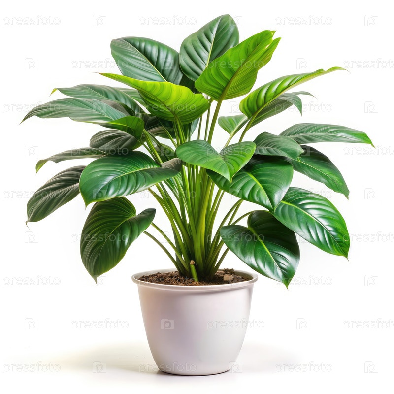 Плодородное зеленое растение мирной лилии в белом горшке на белом фоне. генеративная ИИ