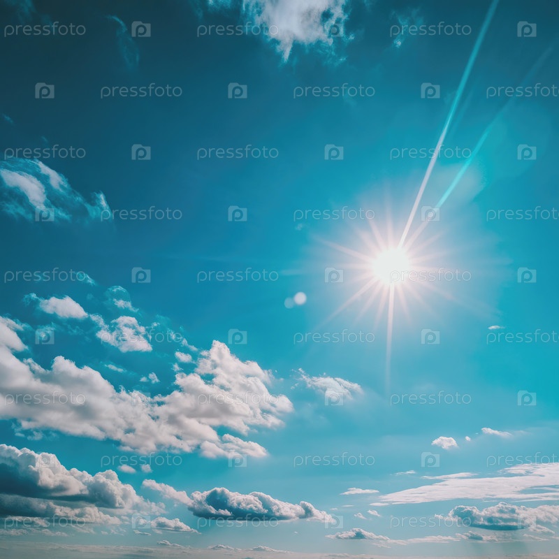 Ярко-синее небо с сияющим солнцем и рассеянными облаками