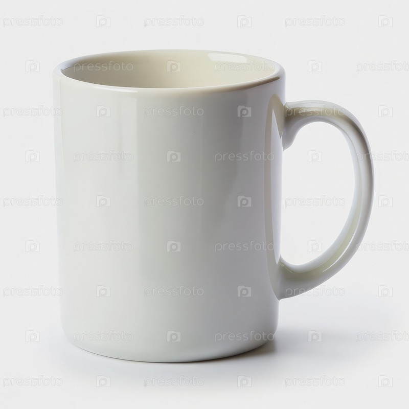 Белая керамическая кружка с ручкой на белом фоне