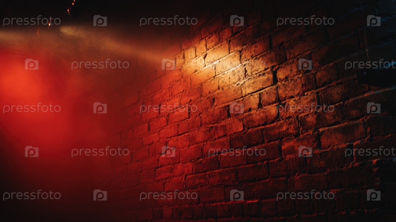 Старые кирпичные стены с красным драматическим освещением, городская текстура гранжа, промышленный фон, капризная атмосфера и грубая архитектурная поверхность