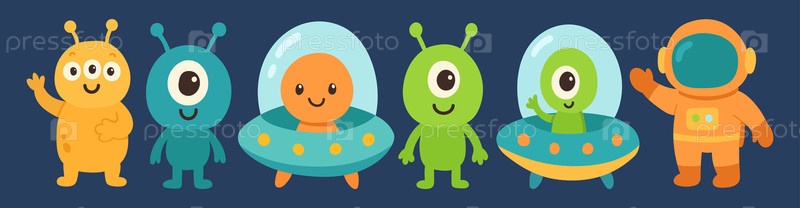 Пришелец милый монстр с векторным мультипликационным персонажем для установки забавный Хэллоуин. Иллюстрация изолированная счастливая с инопланетянами комиксы дети для символа лица животного. Забавный маленький пришелец с игрушкой вектора искусства для ка