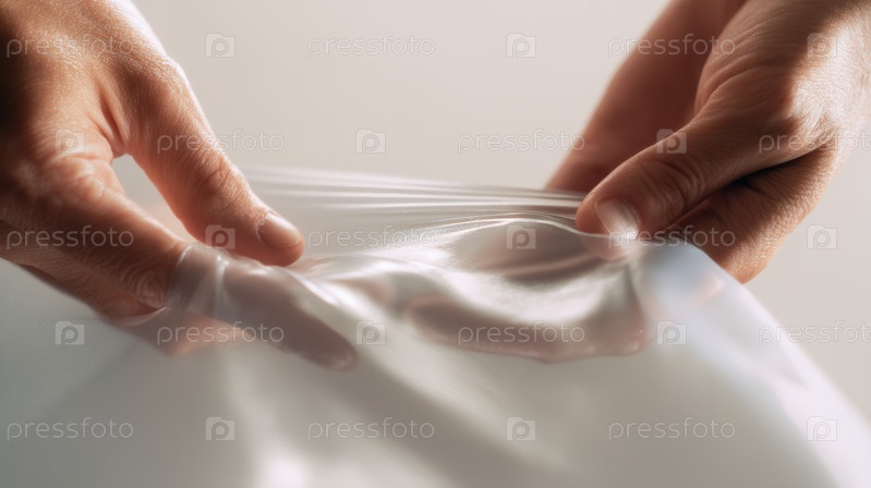 Ближайшее изображение эластичного латексного листа, растянутого руками, абстрактное исследование материала, показывающее гибкость, гладкую текстуру и современную концепцию дизайна с минимальной эстетикой