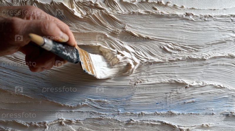 Клюшовый снимок толстой текстуры акриловой краски с мазками кистей, демонстрируя абстрактное искусство, творческий процесс и современный художественный фон