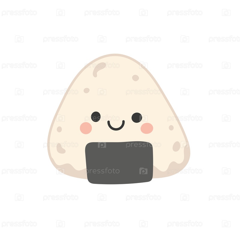 Иллюстрация к иконе Onigiri для дизайна мультфильмов продовольствия и изолированный вектор азиатского происхождения Искусство милого риса для ресторана Japan onigiri и белый графический суши Характеристики меню Onigiri для еды Здоровая икона