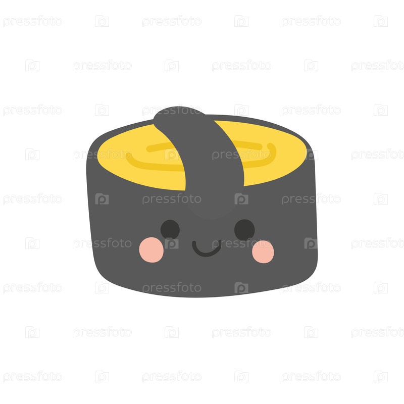 Sea Urchin Sushi или Uni Gunkan Japanese Food Illustration мультфильм рыба для риса изолированный азиат. Япония стикер меню векторная икона морепродуктов для милого дизайна. художественное рисование вектора с счастливой иллюстрацией