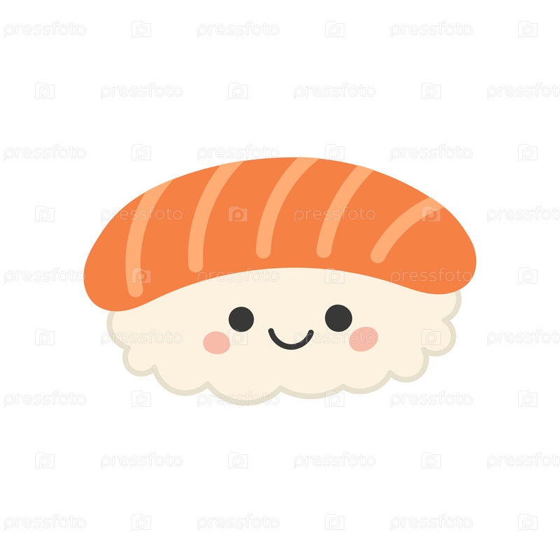 Икона еды суши для иллюстрации мультфильм вектор и дизайн рыбы Япония. персонаж ресторана улыбка для милой рисовой пищи и счастливого азиатского японца. меню лица еды для иллюстрации здоровый икон