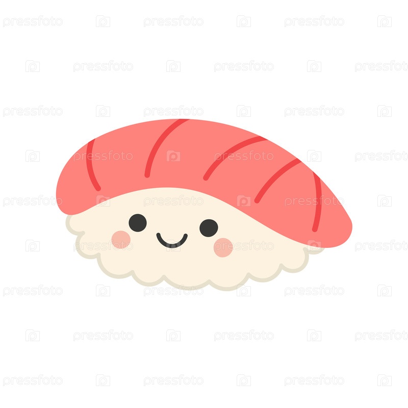 Векторная иллюстрация рыбы с едой Суши-ресторан и знаковый мультфильм Япония. Азиатские рисовые морепродукты с японским вектором меню и блюдо кухни тунца. Здоровый нигири вектор с дизайном изолированной пищи